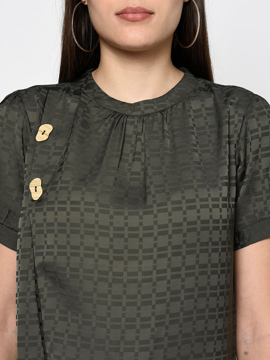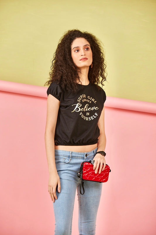 Black Leaf Printed Buttoned Shirt Top With Knot In Front