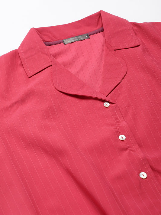 Pink V Neck Collared Co-ordinate Set With Bell Bottom