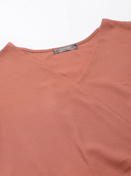 Rust V Neck Co-ordinate Set With Looser Bottom