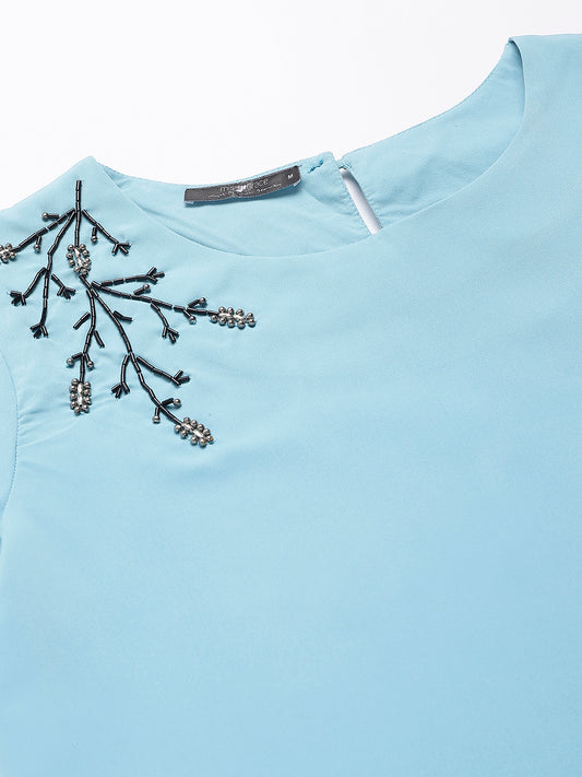 Aqua Round Neck Embroidered Peplum Co-ordinate Set