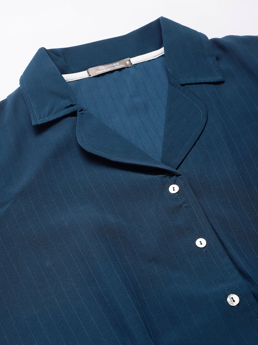 Navy V Neck Collared Co-ordinate Set With Bell Bottom