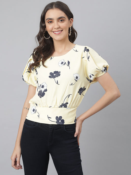 Lemon Floral Top With Elasticated Waist Band At Back For Perfect Fit
