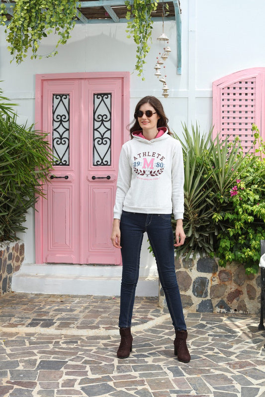 Pink Full Zipper Embellished Hoodie Sweat Shirt