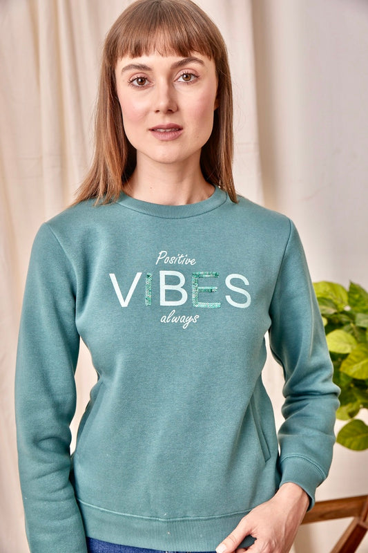 Grey Green New York Print & Embellished Hoodie Sweat Shirt