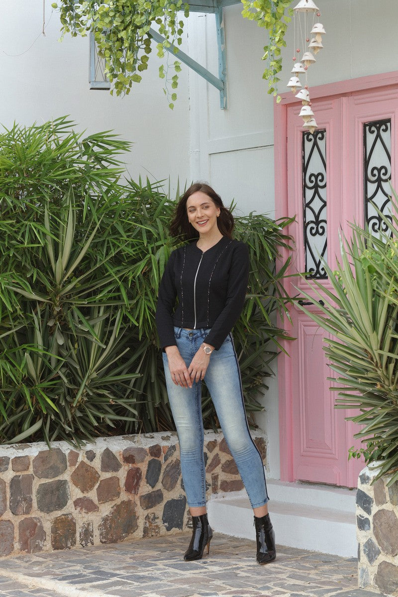 31756 - Get ready to zip up and crop the perfect black sweat shirt for any occasion!