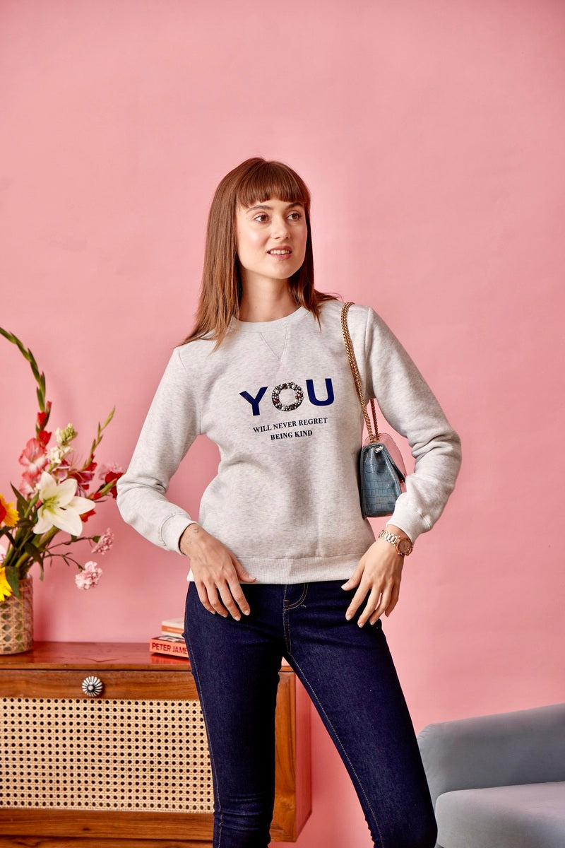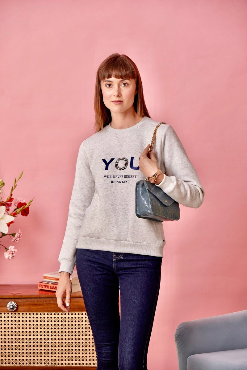 32714 - This dope Grey Melange Print & Embellished Sweat Shirt will have you looking fly AF.