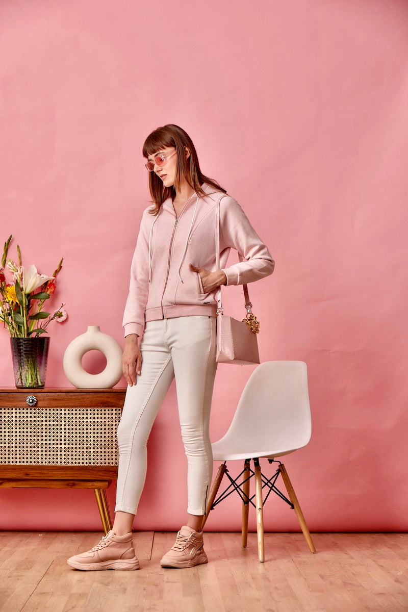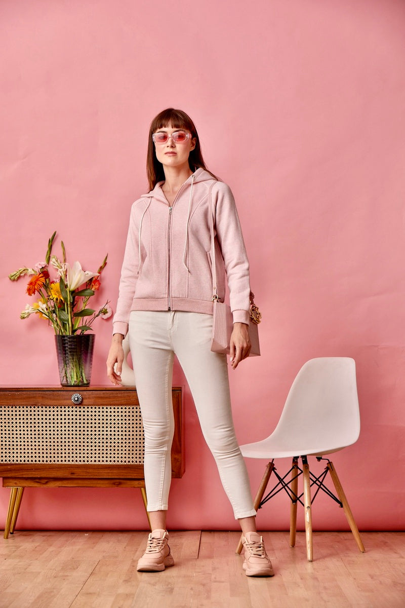 Pink Zipper Hoodie Sweat Shirt