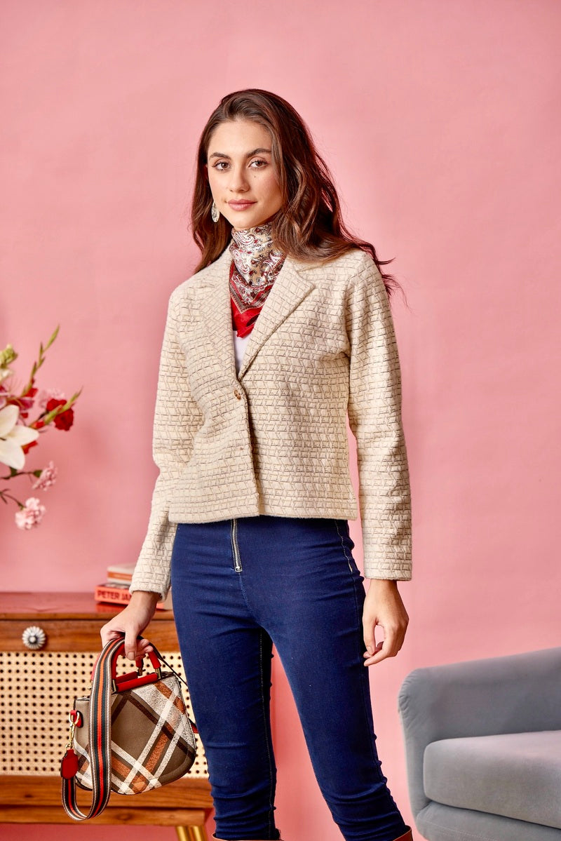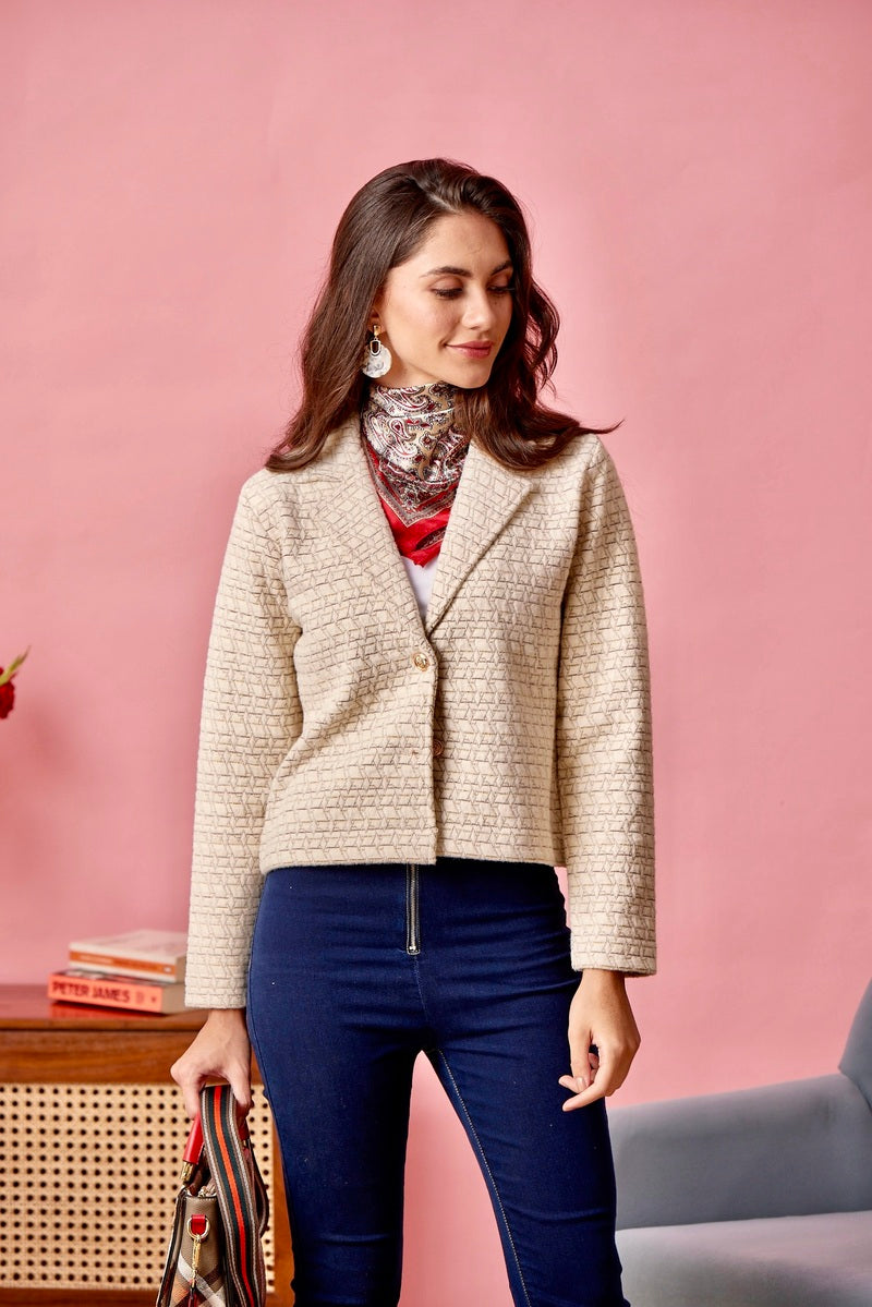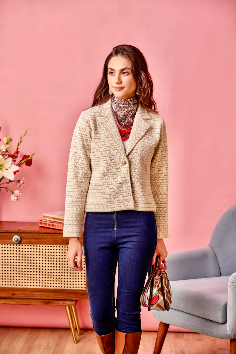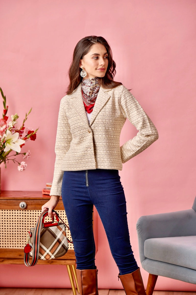 This classic off white fawn coat is a timeless piece for your wardrobe. It is crafted from a unique blend of wool and cotton, providing optimal comfort and warmth. The coat has a streamlined design to hug your body in all the right places, and the neutral color pairs well with any outfit. Add luxurious style and warmth to your look!