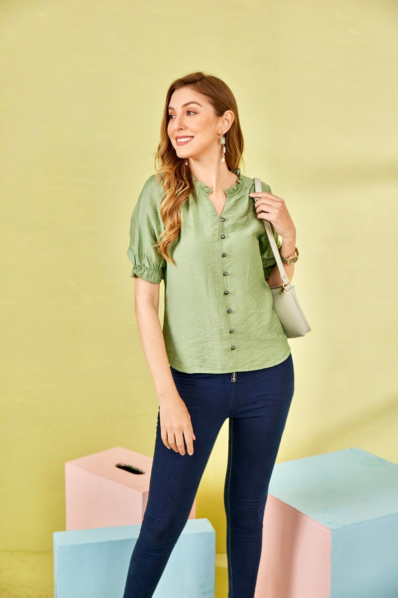 Green Woven Crush Top
