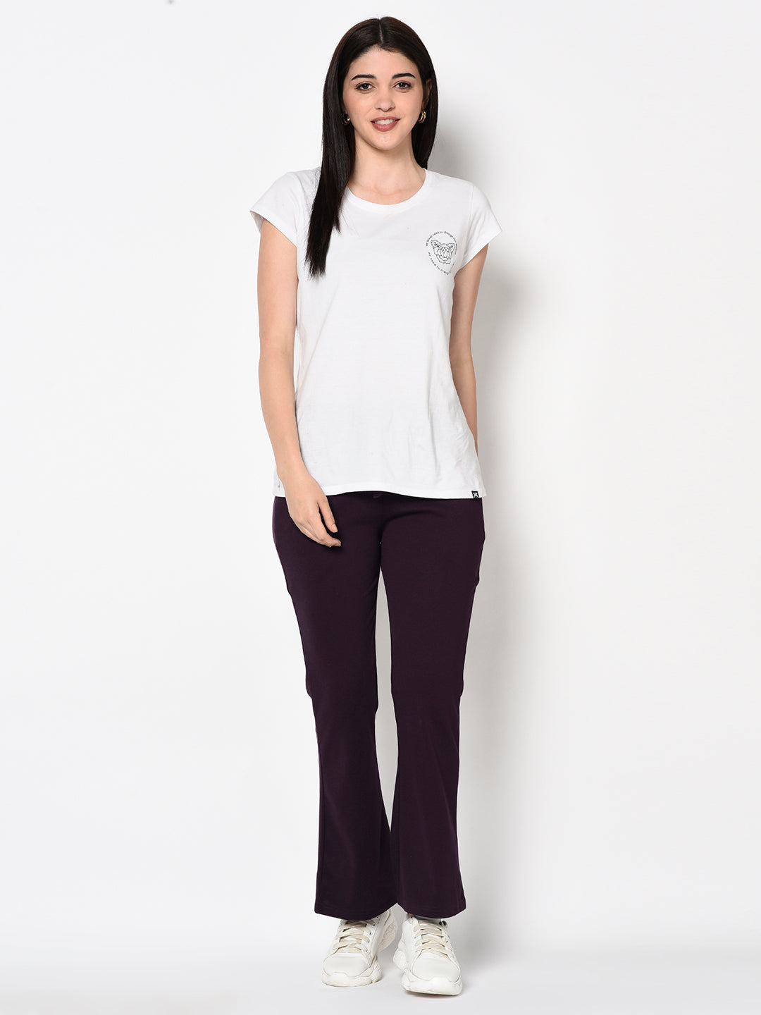 These sporty Purple Bell Bottomed Stretch Fabric Track Pants feature two side zipper pockets and a comfortable, flattering fit. Made from a polyester-spandex blend, the fabric provides lasting durability and stretch for ease of movement. Perfect for a workout or running errands.