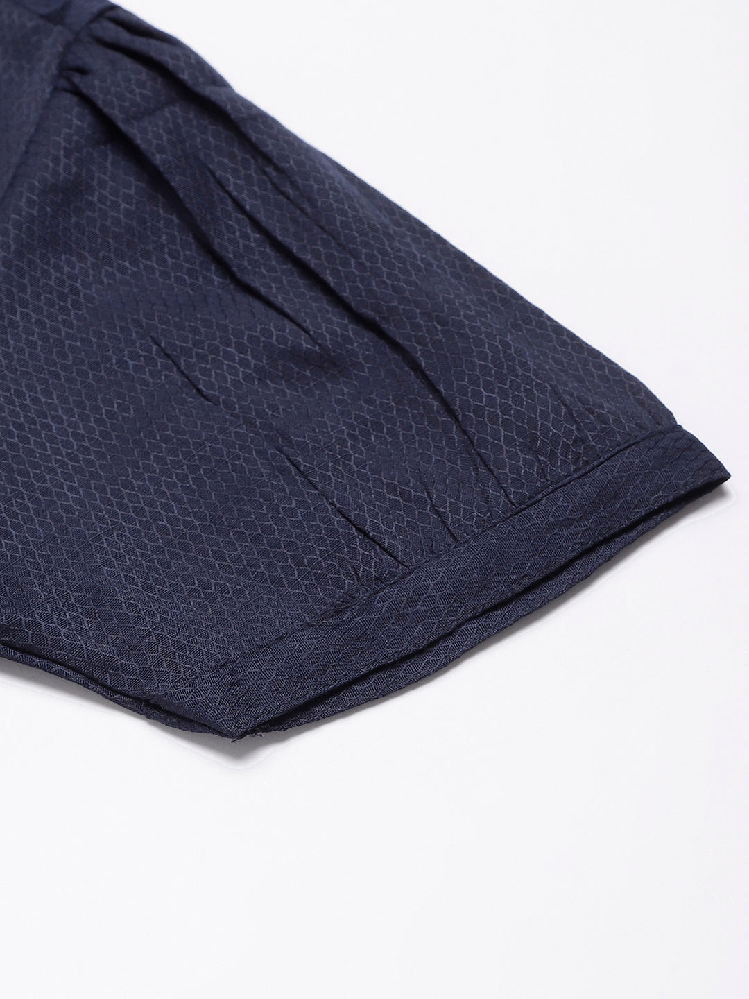 Navy Collared Embroidered Buttoned Shirt ( Top)