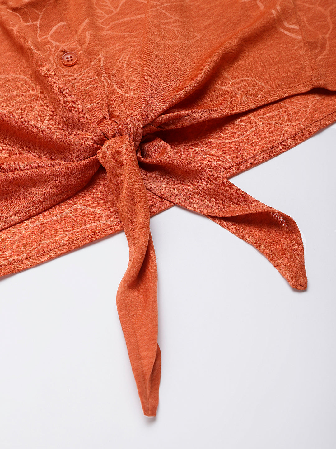 Rust Cotton Blend Self Printed Floral Front Buttoned Knotted Shirt Top