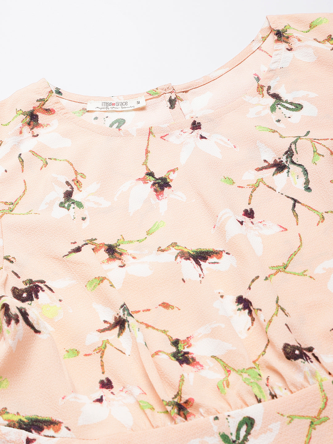 Peach Floral Printed Office Wear Top