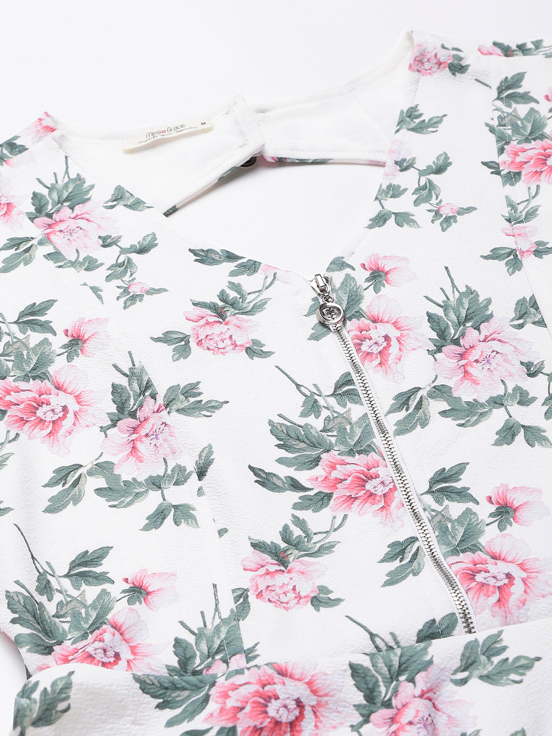 Off White Poly Blend Lycra Fabric Floral Printed Dress With Organza Sleeves