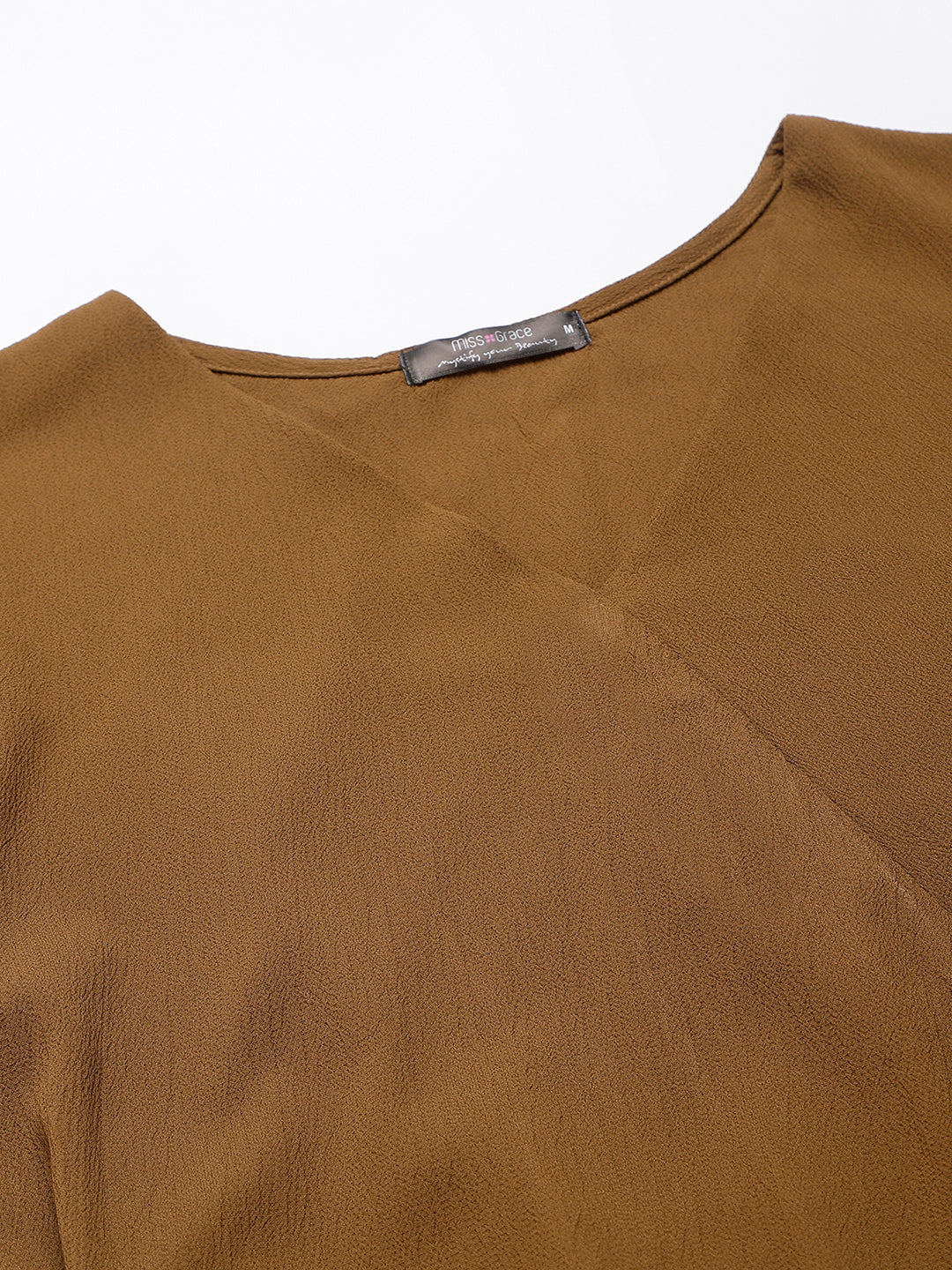 Brown V Neck Co-ordinate Set With Looser Bottom